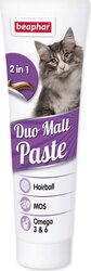 Doplnkové krmivo pre mačky vo forme dvojfarebnej pasty. Dodáva organizmu nevyhnutné vitamíny a podporuje zdravú črevnú mikroflóru. Odporúčame užívať obzvlášť v období po odčervovaní, po chorobe alebo po užívaní antibiotík, v prípade črevných ťažkostí, vracaní či pri hnačkách. V jednej tube sú obsiahnuté dve pasty: Multivitamínová pasta (žltá) obsahuje vitamíny a minerály dôležité pre zdravie mačky. Omega-6 mastné kyseliny zabezpečujúce zdravú pokožku a nádhernú srsť a zvyšujú odolnosť proti chorobám. Taurín napomáha správnej funkcii srdca a zlepšuje zrak. Kondicionér pasta (hnedá) obsahuje BIO MOS (Mannan Oligosacharid) – podporuje zdravú črevnú mikroflóru. Zloženie: oleje a tuky, mlieko a mliečne deriváty, deriváty zeleninového pôvodu (extrakt zo sladu 3,7%, MOS 4650mg/kg), kvasnice. Akostné znaky: hrubý proteín 16,1%, hrubé tuky 52,7%, hrubý popol 4,2%, vlhkosť 2,1%, vápnik 0,5%, fosfor 0,5%, sodík 0,4%, draslík 0,7%, kyselina linolová 232g/kg (omega-6 mastná kyselina), kyselina gamma-linolová 31g/kg (omega-6 mastná kyselina). Vit. B1, B2, B6, B12, E, pantothenát vápenatý, nikotínamid, kyselina listová, biotín, taurín. Denná dávka: 3 cm pasty. Dvojité dávkovanie vo vážnych prípadoch. Návod na použitie: Zmiešajte s krmivom alebo podávajte priamo z tuby.