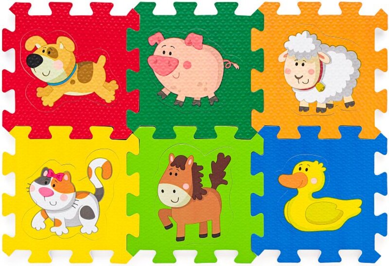 Penové puzzle s vyberateľným stredom zoznámia deti s domácimi zvieratkami. Ich úlohou je vložiť zvieratká do správnych otvorov.