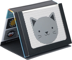 Juk alebo kuk? Striedajte hravé kontrastné ikony zvierat s pohľadmi do zrkadla, a zabavte tak svojho malého zvedavca, keď leží na brušku. Prebal hry je možné zložiť do trojuholníkovej podstavy s kapsou pre obrázky a zrkadlom na druhej strane. Obrázky s roztomilými zvieracími tvárami sú kontrastné, pútajú pozornosť a rozvíjajú zrak.