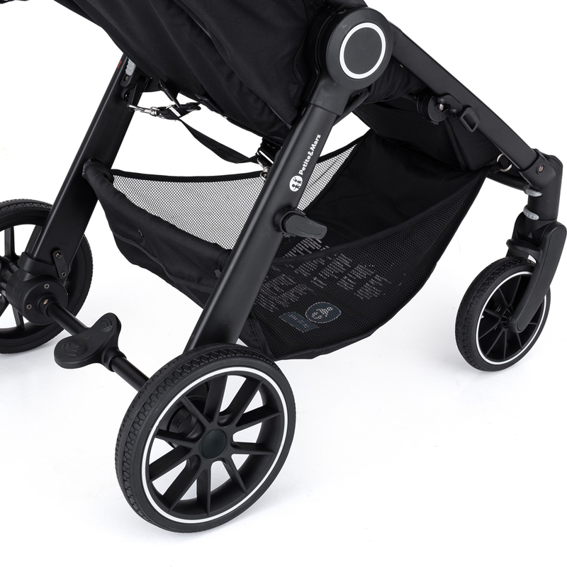 - kvalitný úchyt kolies, ktorý zabezpečuje stabilitu kočíka počas jazdy