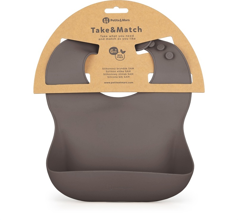PETITE&MARS Podbradník silikónový Take&Match Bitter Cocoa 6m+