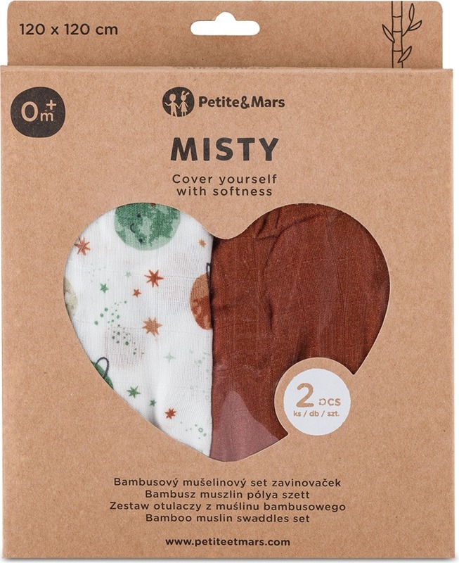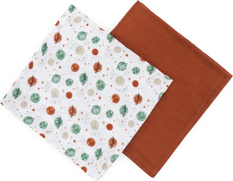 PETITE&MARS Prikrývka bambusová mušelínová 2ks Misty Celestial Planets 120 x 120 cm