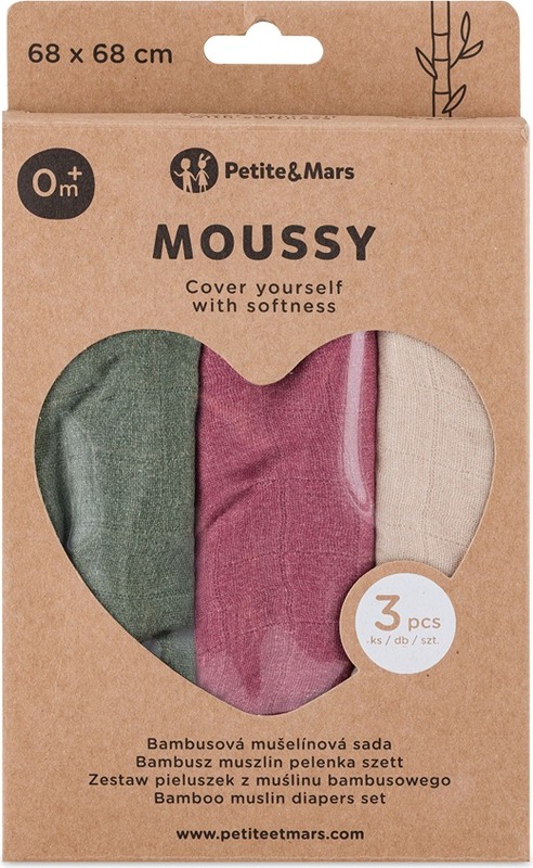 PETITE & MARS Sada plienok bambusová mušelínová 3ks Moussy Botanic Tones 68 x 68 cm