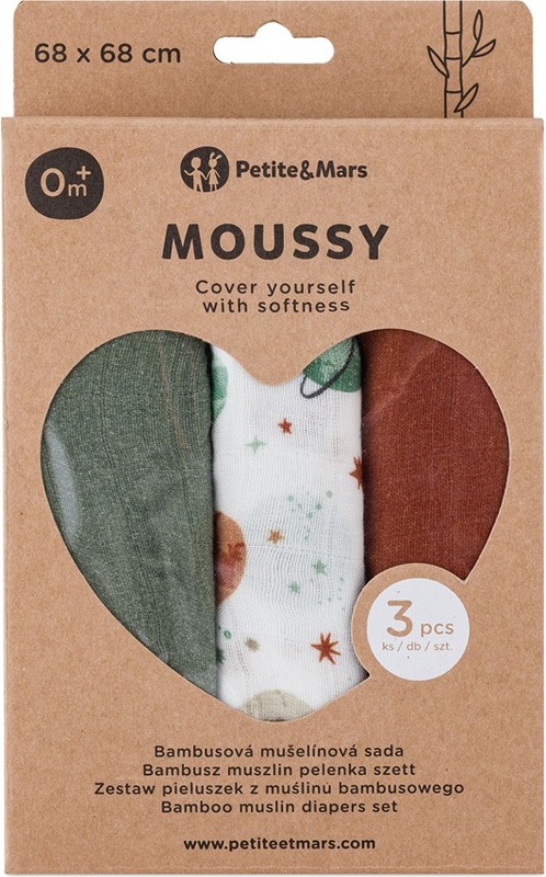 PETITE & MARS Sada plienok bambusová mušelínová 3ks Moussy Celestial Planets 68 x 68 cm
