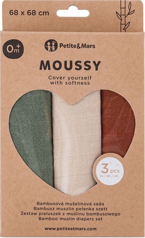 PETITE & MARS Sada plienok bambusová mušelínová 3ks Moussy Earth Tones 68 x 68 cm