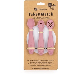 PETITE&MARS Set 3 ks silikónových tréningových lyžičiek Take&Match Dusty Rose 6m+