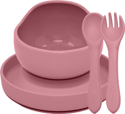 PETITE&MARS Set jedálenský silikónový TAKE&MATCH 3 ks Dusty Rose 6m+
