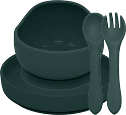 PETITE&MARS Set jedálenský silikónový TAKE&MATCH 3 ks Misty Green 6m+