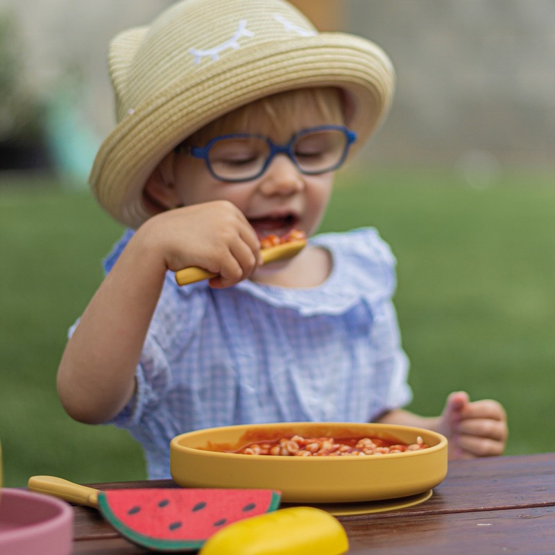 - ergonomický dizajn, tvarovaný s ohľadom na najmenších: zaoblené tvary uľahčujú jedenie