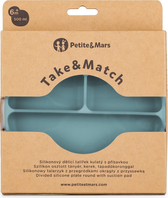 PETITE&MARS Tanierik silikónový deliaci okrúhly Take&Match Frosted Sky 6m+