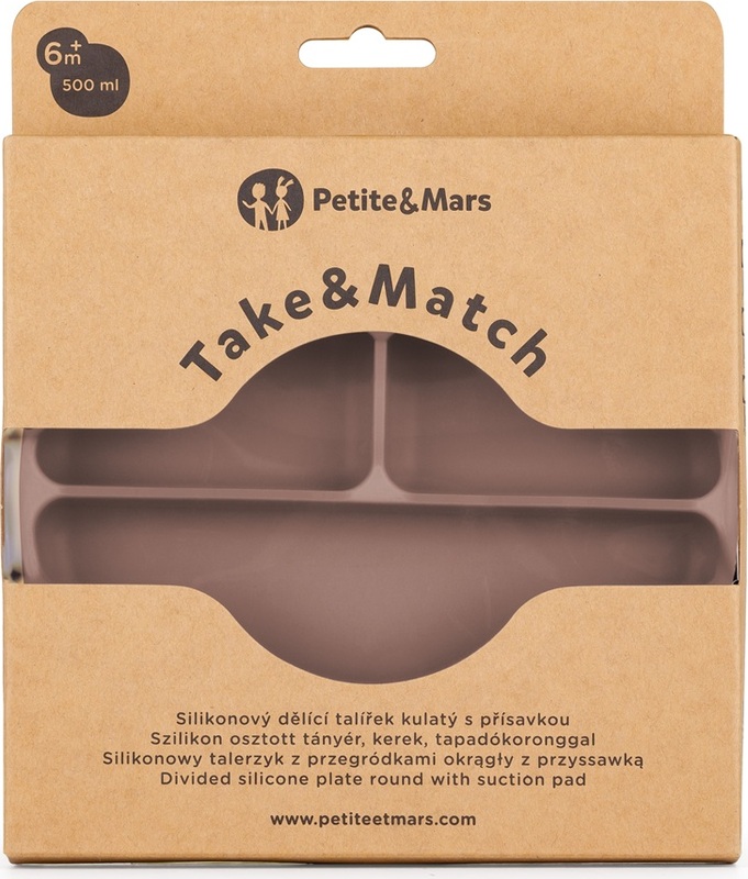 PETITE&MARS Tanierik silikónový deliaci okrúhly Take&Match Velvet Latte 6m+