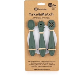 TAKE&MATCH silikónové tréningové lyžičky sada 3 ksTréningový set pozostávajúci z troch lyžičiek umožňuje vášmu dieťatku objaviť radosť z jedla. Každá lyžička je starostlivo navrhnutá tak, aby sa papanie stalo zážitkom. Set obsahuje polievkovú lyžičku, lyžičku s výstupkami na ľahké uchopenie cestovín a lyžičku na namáčanie, ktorá je ideálna na jogurty alebo peny. Niektoré lyžičky v sete majú jemné otvory, ktoré umožňujú kontrolované podávanie jedla. Vďaka tomu sa dieťatko môže naučiť jesť samostatne, skúmať rôzne tvary a textúry, čo stimuluje jeho zmysly a rozvíja zmyslové schopnosti. Rodič si môže byť istý, že jeho dieťatko neprehĺta príliš veľké sústa naraz. Tento set je nielen pomôckou, ale aj zdrojom radosti, ktorá vášmu dieťatku spríjemní každodenné stravovanie.