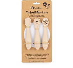 PETITE&MARS Set 3 ks silikónových tréningových lyžičiek Take&Match Desert Sand 6m+