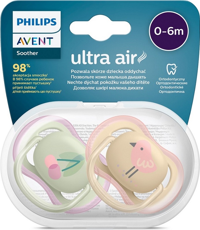 Philips AVENT Cumlík Ultra air obrázok 0-6m dievča (čerešňa) 2 ks