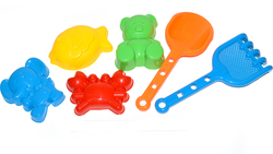 Sada obsahuje : 4 ks formičiek rôznych tvarov, 1 x lopatka, 1 x hrable