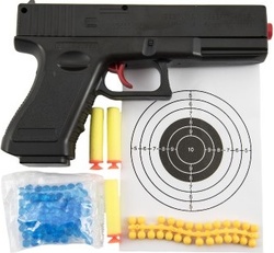 Hravá zábava predovšetkým pre chlapcov! Pištoľ na penové náboje, vodné aj gumové guličky zabaví každého pištoľníka. Vlož guličky, nabi, zamier a strieľaj.