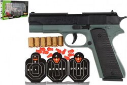 Pištoľ na náboje plast 19cm + terče 3ks, náboje 6ks