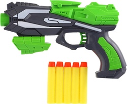 Pištoľ na penové náboje plast + 5ks nábojov zelená