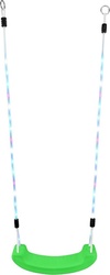 Pevná plastová hojdačka zelenej farby je opatrená ľahko ovládateľnými svietiacimi lanami.