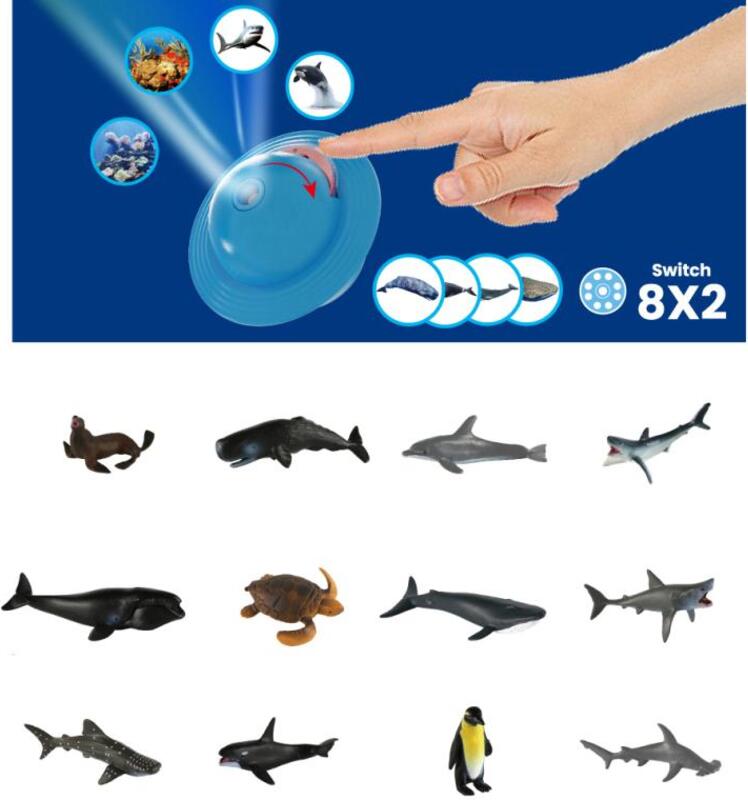 Modely morských zvieratiek: K sade sú priložené aj malé figúrky zvieratiek, ktoré sa premietajú na plátno. Deti si tak môžu zvieratká ohmatať, hrať sa s nimi a porovnávať ich s obrázkami na stene.