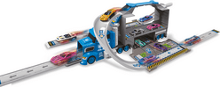 Policajný kamión so 4 autami a dopravnými značkami