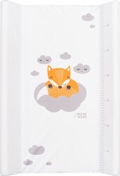 Praktická tvarovaná prebaľovacia podložka New Baby z nepremokavého, plastového materiálu s obrázkom líšky a obláčikov. Podložka je vyplnená polyesterom, má vyvýšené bočné strany a možno ju použiť na komode či inom mieste na prebaľovanie, vďaka nízkej váhe je mobilná. Je vyrobená z najkvalitnejšej certifikovanej fólie, ktorá neobsahuje žiadne škodlivé látky a je citlivá k najjemnejšej detskej pokožke. Bez tvrdého podkladu.
