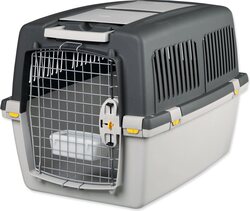 Pre menšie psy do váhy 18 kg. Plastová prepravka s kovovými uzamykateľnými dvierkami. Možno dokúpiť kolieska.