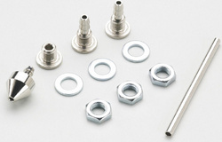 Príslušenstvo k veľkej palivovej nádrži oceľ, obsahuje 3x priechodky so závitom M8 jemným, trubičku 4/3 x 70mm, bimbátko priem. 14x23mm s koncovkou pre hadičku rozm. 5/4mm.