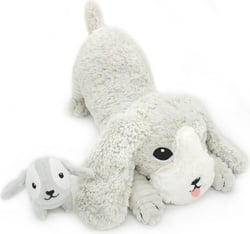 PTIPOTOS Plyšový psík Toutou svetlo sivý – mama s miminkom
