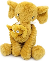 Ptipotos Plyšový slon Dimoitou horčicový - mama s dieťatkom
