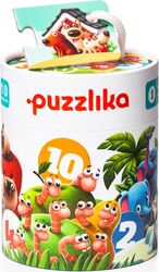 V krabičke nájdete 20 veľkých pevných puzzlov, tvoriacich 10 samostatných dvojíc kartičiek, ktoré spolu tematicky súvisia. Na jednej polovici kartičiek je ilustrácie jednotlivých zvieratiek v určitom počte a na druhej polovici kartičiek je vyobrazený ich počet číslicou.