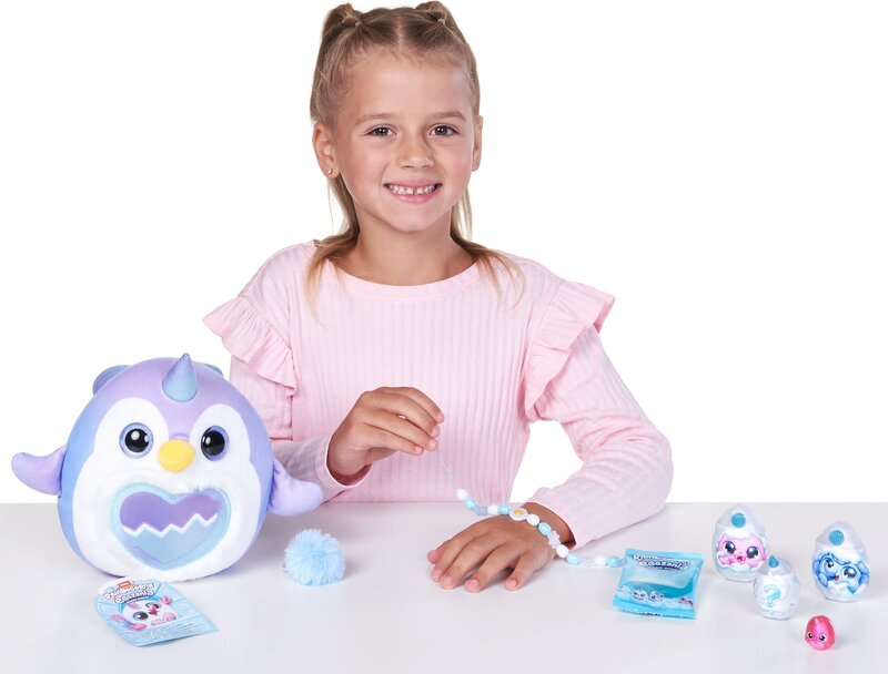 Každé vajíčko skrýva nového plyšáka a množstvo zimných doplnkov, vrátane nositeľných ozdôb, slizu a zberateľských figúrok Yolkies. Odlúpnite špeciálne srdiečko na vajíčku a odhaľte ďalšie čarovné tajomstvá.