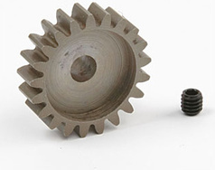 Robitronic pastorok na hriadeľ 5 mm s 21 zubami a modulom ozubenia 25,4DP (1 mm) pre RC modely áut. Vyrobené z kalenej ocele. Vonkajší priemer 23mm.