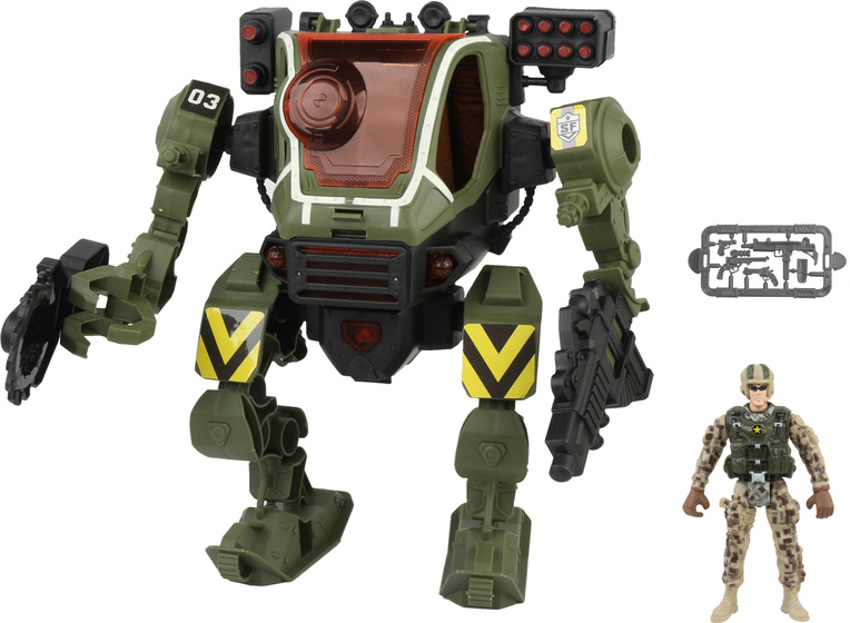 Bojový robot mecha je akčná hračka s realistickými svetelnými a zvukovými efektmi, ktorá nadchne všetkých malých fanúšikov techniky a vojenských misií. Deti si môžu užiť napínavé dobrodružstvá s pilotom a jeho mocným robotom.