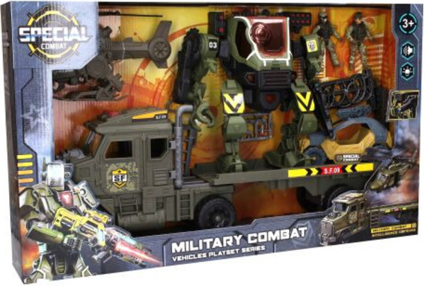Robot Mecha s efektmi – set s tahačom a helikoptérou ponúka deťom napínavú vojenskú hru plnú akcie a dobrodružstva. Robot vydáva svetelné a zvukové efekty, ktoré oživujú hru a rozvíjajú predstavivosť.