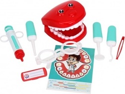 Sada obsahuje všetky potrebné nástroje na vyšetrenie a ošetrenie zubov ich obľúbených hračiek: