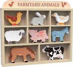 Čo by to bolo za farmu bez zvieratiek? Táto sada obsahuje figúrky 8 zvieratiek z FSC® dreva - sliepku, zajačika, hus, ovcu, prasiatko, oslíka, koníka a kravičku.