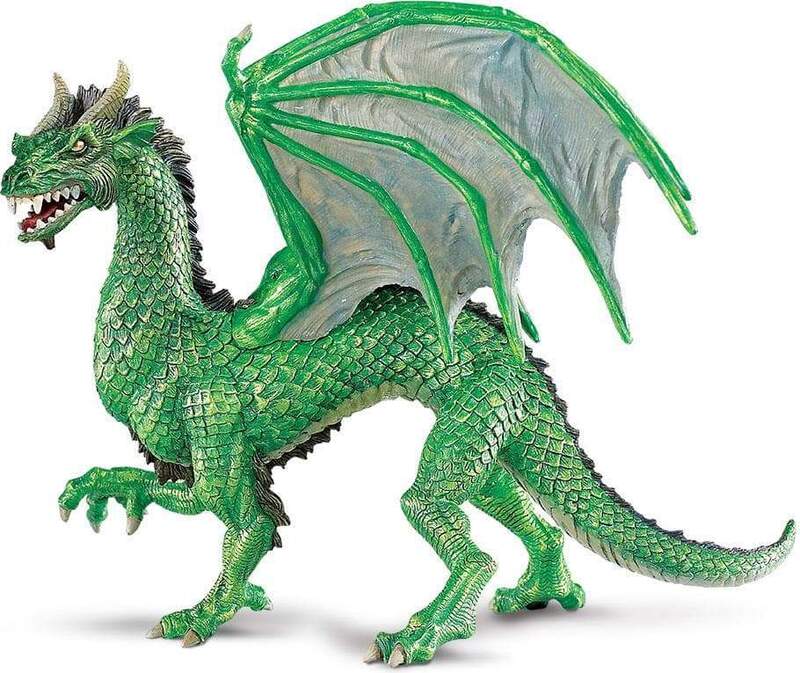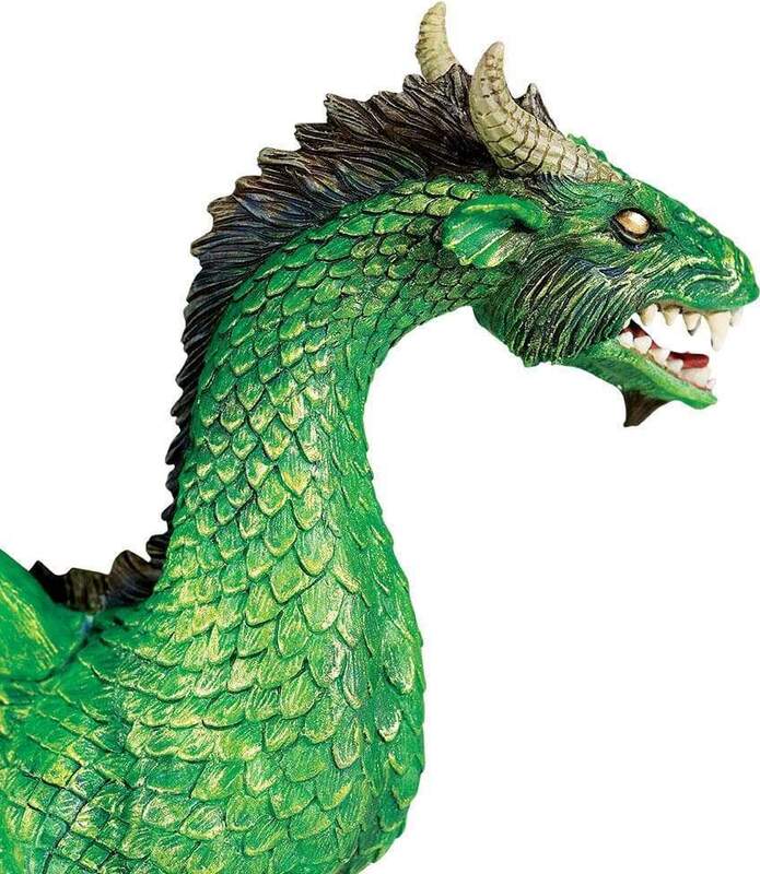 Veľkosť a farba: Tento tmavozelený drak, merajúci 6 palcov (cca 15,2 cm) na dĺžku a 5 palcov (cca 12,7 cm) na výšku, má akcenty striebornej a čiernej so ohromujúcimi sivými krídlami podobnými netopierím.