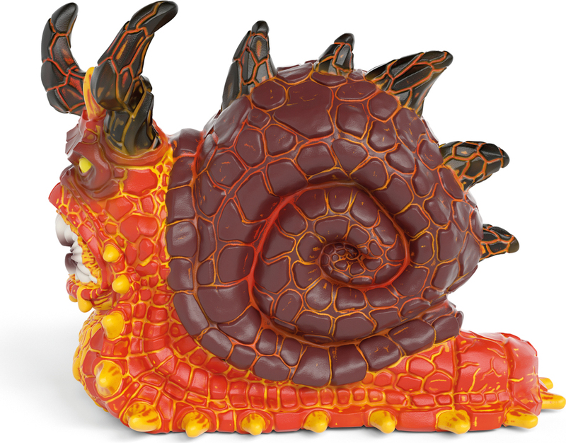 Odporný a slizký lávový slimák sa už blíži. Veľmi pomaly si svoju obeť prezerá jedovatými žltými očami a potom sa plazí hore. Naozaj nie je najrýchlejší. V žiadnom prípade ho však nesmiete podceňovať! Keď ide do boja, má totiž premyslenú stratégiu: Stiahne sa do svojej ulity a tam sa schováva. Je nedobytný, pretože ulita je pokrytá hrotmi. Pokiaľ sa útočník otočí, slimák opäť vylezie z ulity a zahryzne sa ostrými zubami. Táto taktika funguje až desivo dobre a zaistila, že sa ho obáva celý ELDRADOR®. Fuj, to je odporné!