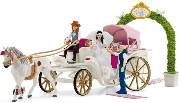 Kôň má na sebe návleky so srdiečkami a uzda je tiež zdobená srdiečkami. Svadobčania si v kočiari urobia pohodlie na vankúšoch v tvare srdca a pripijú si šampanským. Čo je to? Pod sedadlom je tajná schránka! Sú tam schované jablká na neskôr, aby lipicán mohol dostať odmenu za svoju tvrdú prácu.