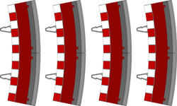 Krajince s mantinelmi pre vonkajší oblúk R3 autodráh SCX 1:32. Balenie obsahuje 4 kusy krajníc s mantinelmi.