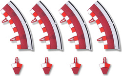 Krajnica s mantinelom pre vnútorný oblúk (zákrutu) autodráhy SCX 1:32. Balenie obsahuje 4 kompletné sady.