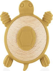 Silikónové drevené hryzátko Turtle, Mustard Yellow
