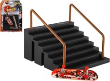 Detský plastový prstový skateboard v sade so schodmi a zábradlím. Slúži na precvičenie jemnej motoriky prstov, ale aj fantázie!