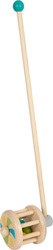 Pestrofarebné guličky po zatlačení na jazdíka divoko poskakujú okolo dreveného bubna a vydávajú zábavný zvuk. Nabáda začínajúcich chodcov, aby sa znova a znova vydávali na objavné cesty naprieč izbičkami. Uchopiteľná drevená guľa na rukoväti umožňuje, aby sa činil skvelým vodítkom pre chôdzu.