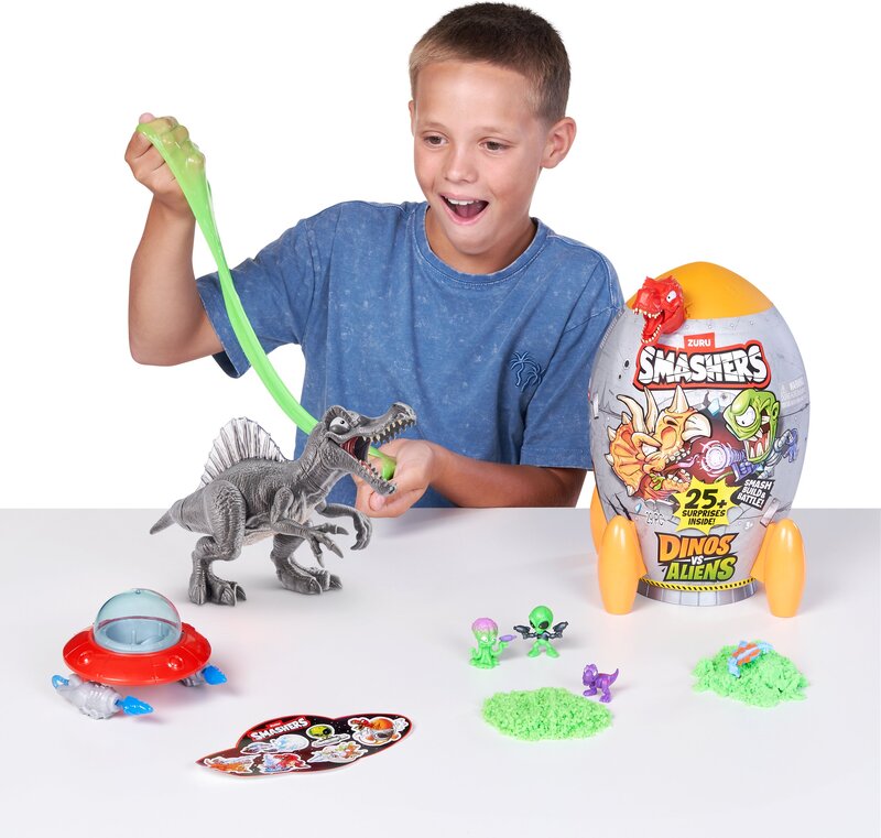 Čaká vás intergalaktická bitka dinosauri vs. mimozemšťania – kto zvíťazí práve u vás? Rozbaľte viac ako 20 prekvapení, postavte si svoju armádu a zažite vzrušujúci súboj plný fantázie.