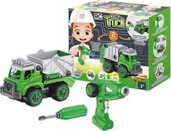 Stavebnica smetiarskeho auta (2 varianty vzhľadu auta) na diaľkové ovládanie, ktoré si dieťa zostaví samo.  Súčasťou je elektrický skrutkovač slúžiaci aj ako diaľkové ovládanie. Autíčko môže jazdiť vpred, vzad, vľavo a vpravo.