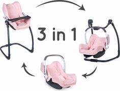 Smoby 3v1 Autosedačka a stolička MC&Q pre bábiky svetlo ružová