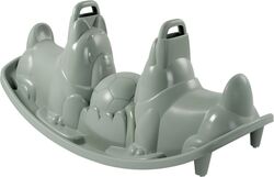Dvojitá hojdačka s ergonomickými sedadlami v tvare psíka v zelenošedé farbe.