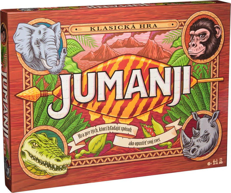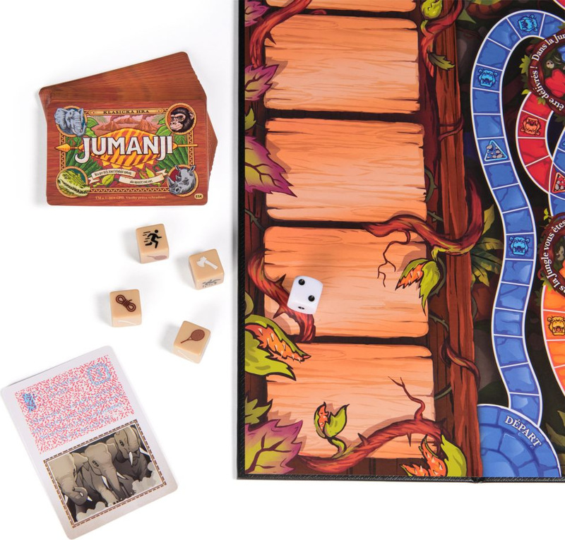 Jumanji - spoločenská hra (SK) je známa dobrodružná hra v novej podobe, plne lokalizovaná do slovenského jazyka. Hoďte osemstrannou kockou a uvidíte, čo vás čaká. Karta nebezpečenstva vám s pomocou dekodéra pomôže rozlúštiť tajnú správu - zachráňte sa pred koncom sveta! Všetci hráči pretekajú s časom, aby prežili. Inak vás a vašich spoluhráčov džungľa porazí.